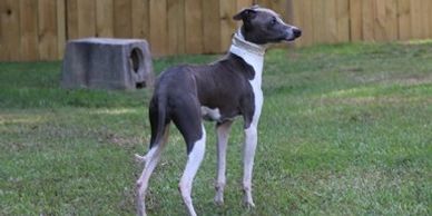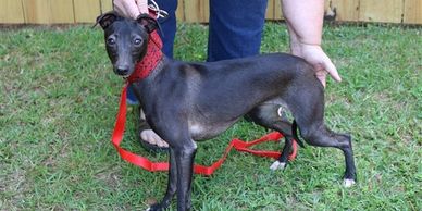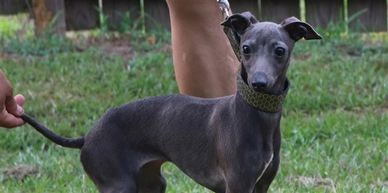 Pluto has TONS of champions in his pedigree including one Grand Champion. He is a goofball and keeps us laughing with his crazy iggy maneuvers ! He is a lover not a fighter and we are excited to see what awesome puppies he has! Pluto weighs about 13 pounds.